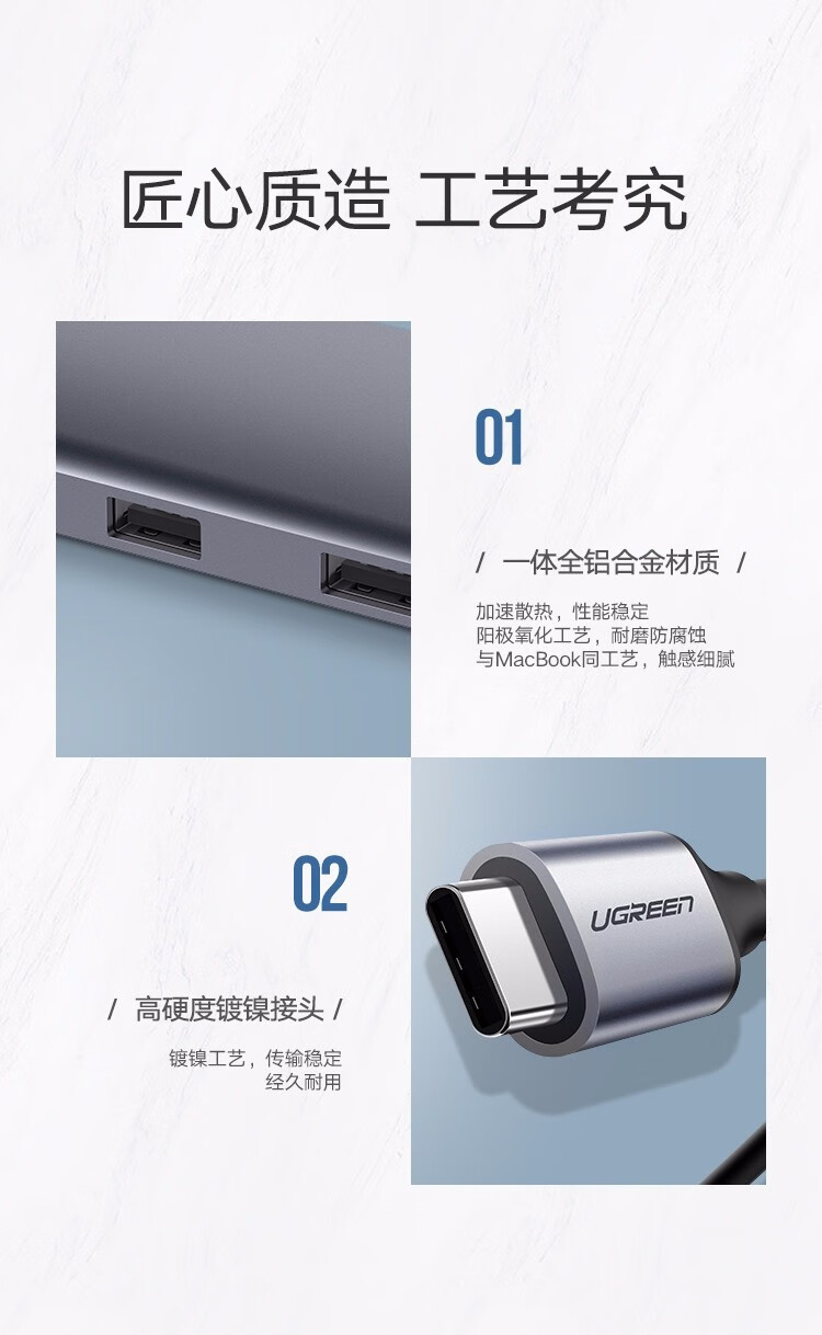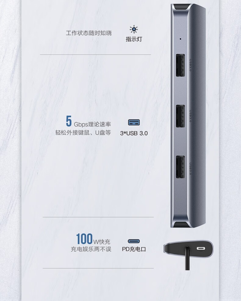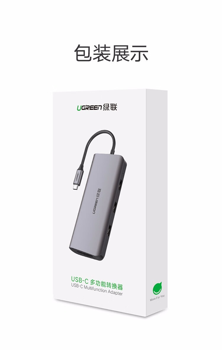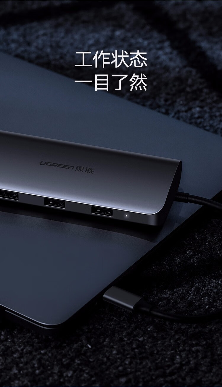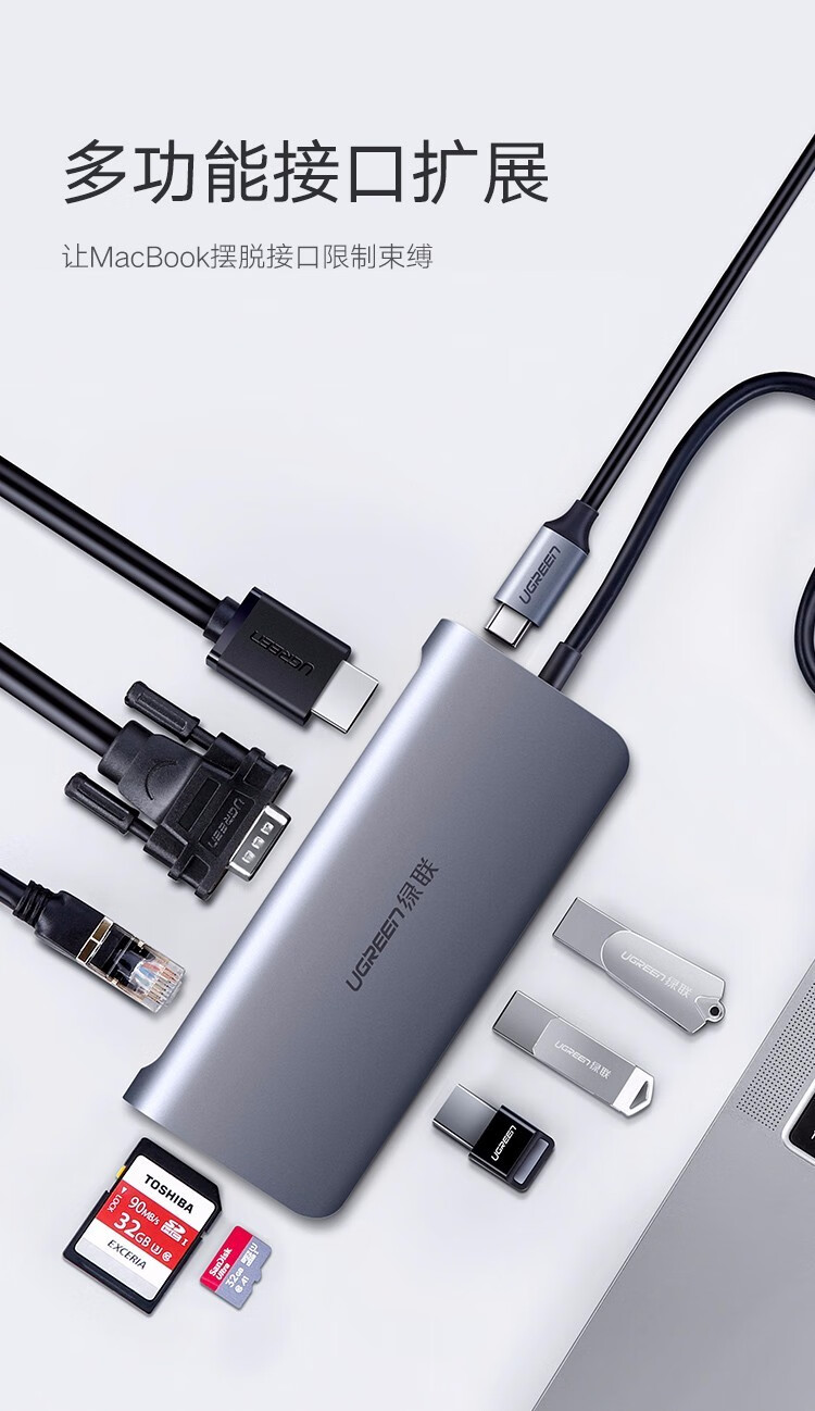 绿联/UGREEN CM179 网络连接设备 绿联 网络连接设备 Type-C扩展坞USB-C转HDMI VGA转换器雷电拓展坞分线器 9合1 HDMI+VGA+读卡+网卡 深灰色 CM179 40873
