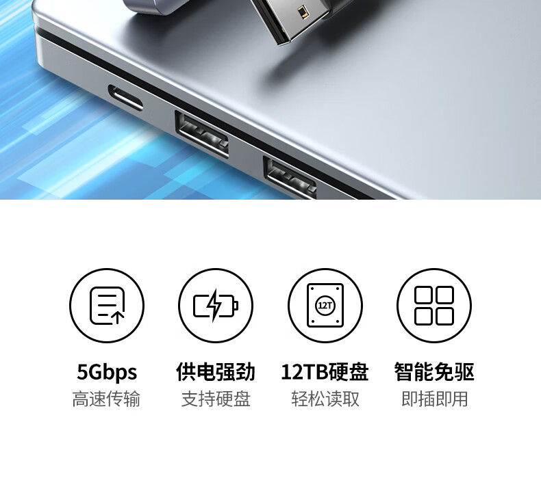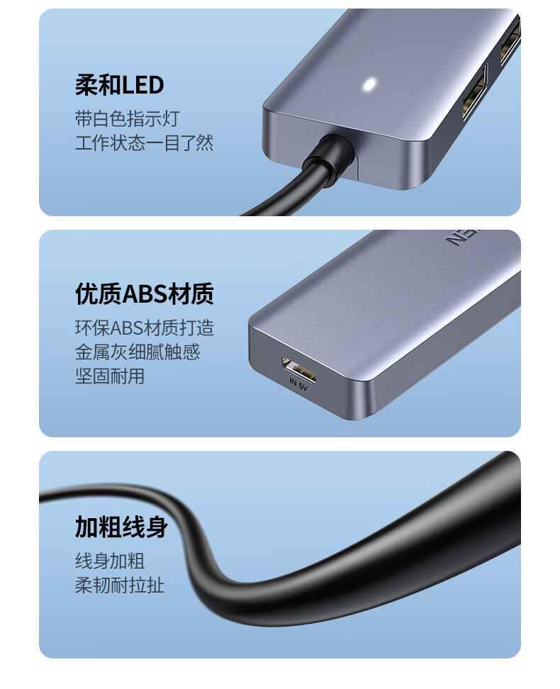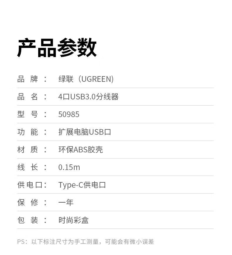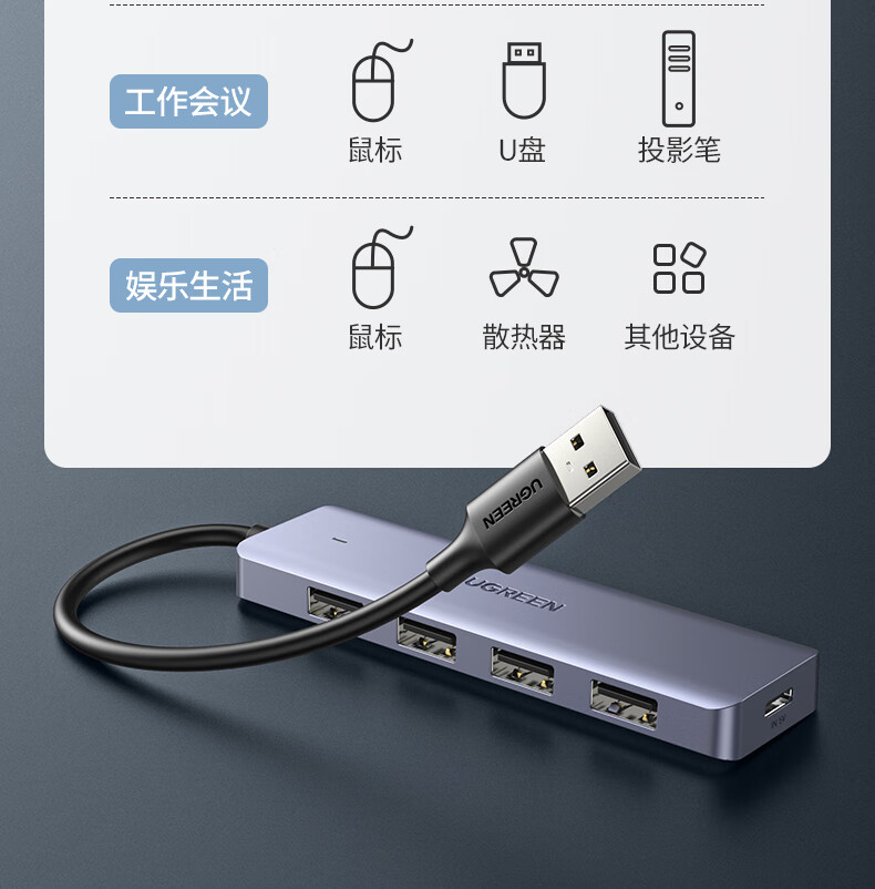 绿联/UGREEN CM219 网络连接设备 绿联CM219 网络连接设备USB3.0分线器 高速4口拓展坞 HUB集线器 USB扩展坞适用一拖多接口转换器转接头延长线 0.15米50985