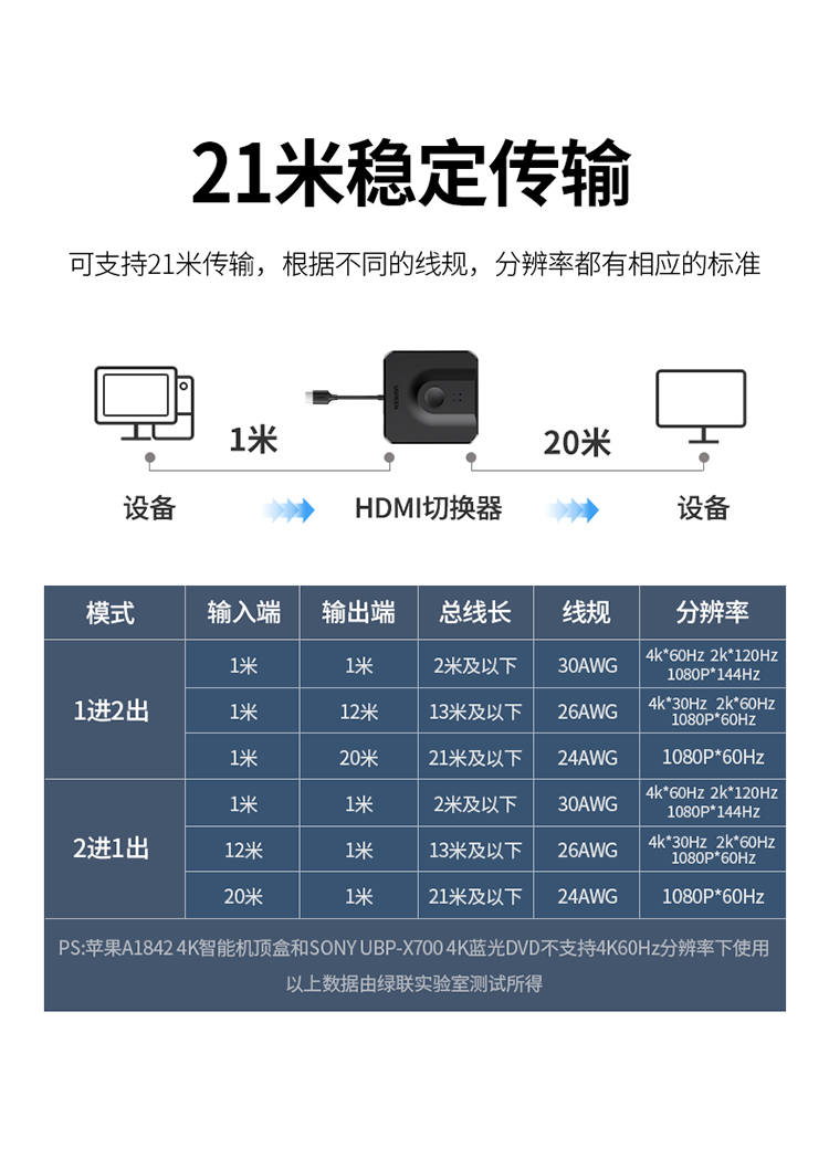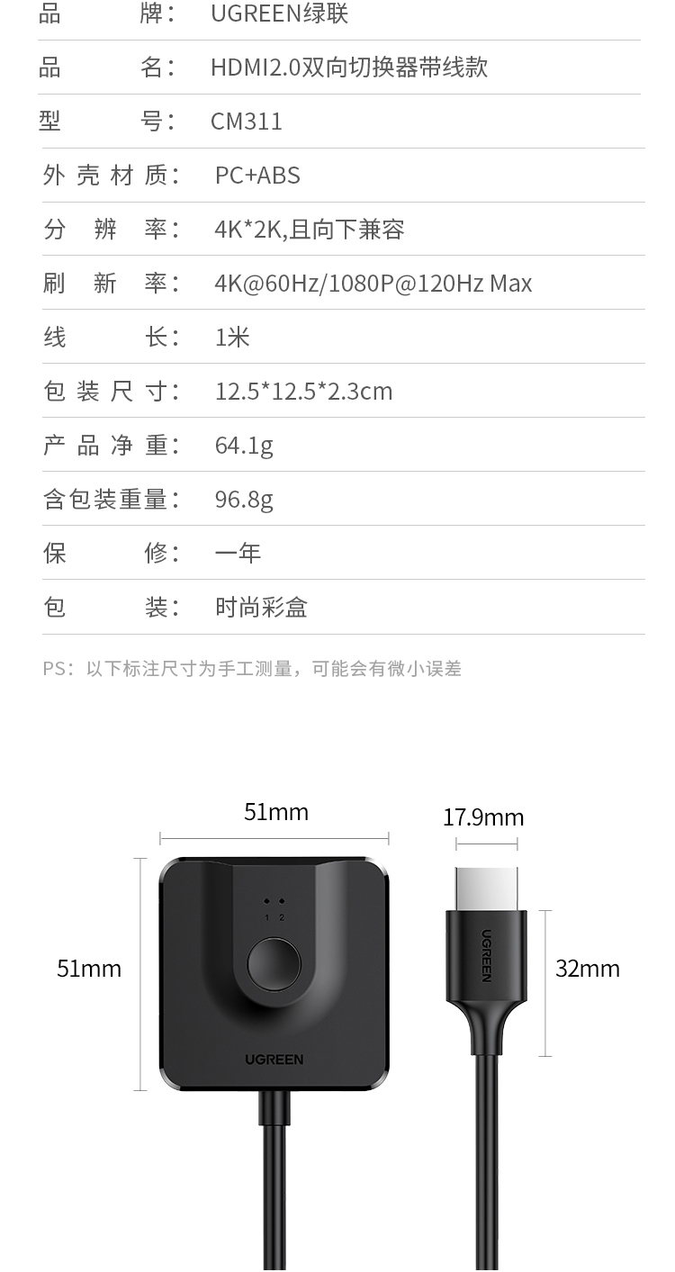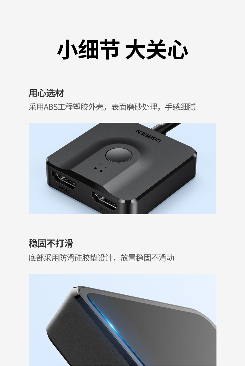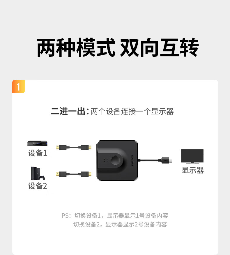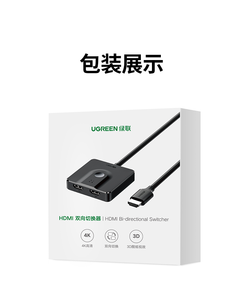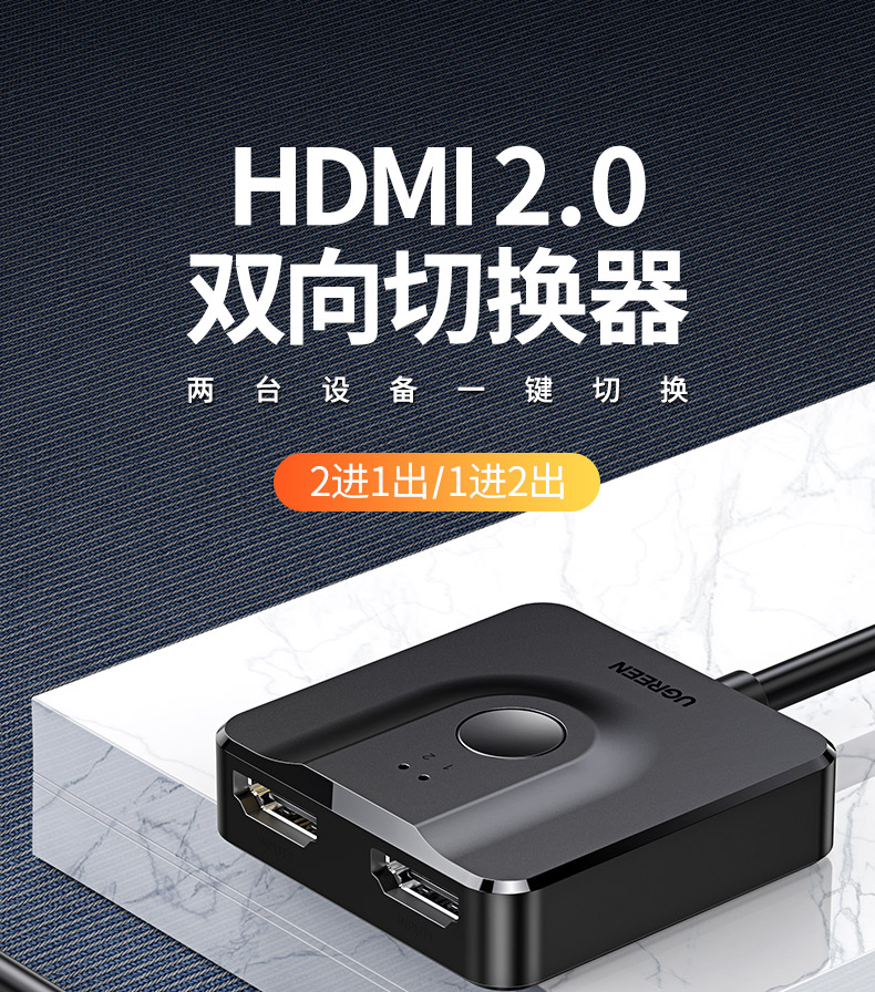 绿联/UGREEN CM311 网络连接设备 绿联 HDMI双向切换器 二进一出4K高清视频分配器一分二显示器分屏器智能盒子接屏幕双向切换 绿联 HDMI双向切换器 二进一出4K高清视频分配器一分二显示器分屏器智能盒子接屏幕双向切换 CM311 7060770607