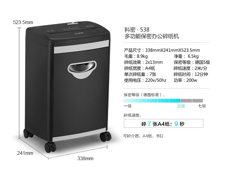 碎纸宽度(mm)  :   220