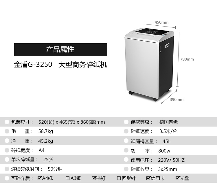 碎纸宽度(mm)  :   220