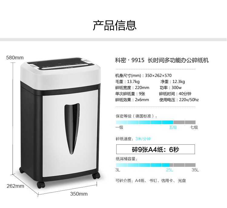 碎纸宽度(mm)  :   220