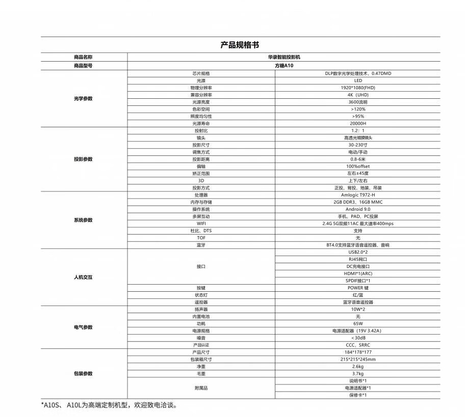 投影镜头  :   无