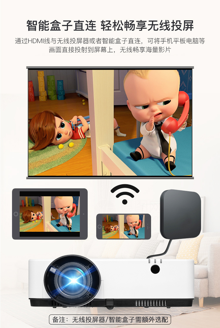 包装清单  :   投影机*1、电源线*1、遥控器*1、保修卡*1、说明光盘*1