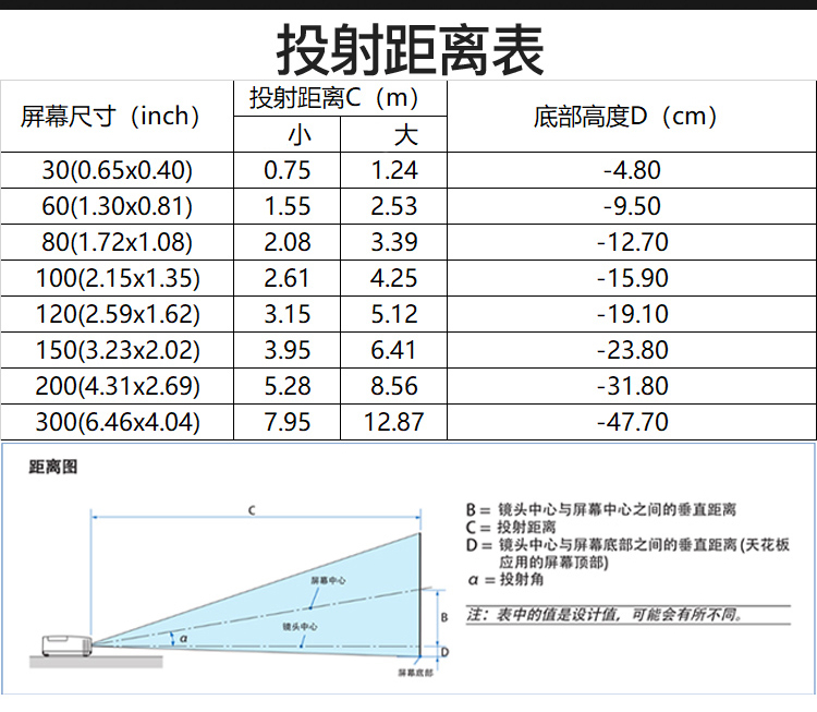 投射比  :   长焦