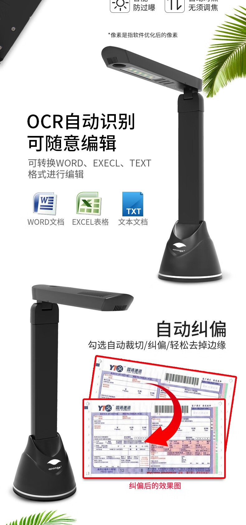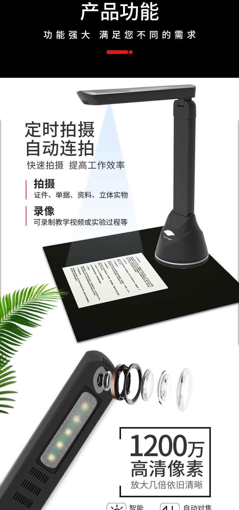 像素(高拍仪)  :   1000W