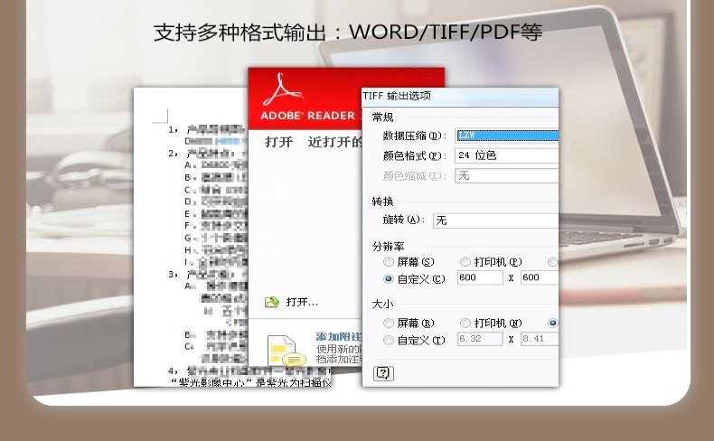 ADF彩色双面扫描速度(A4,200dpi)  :   100