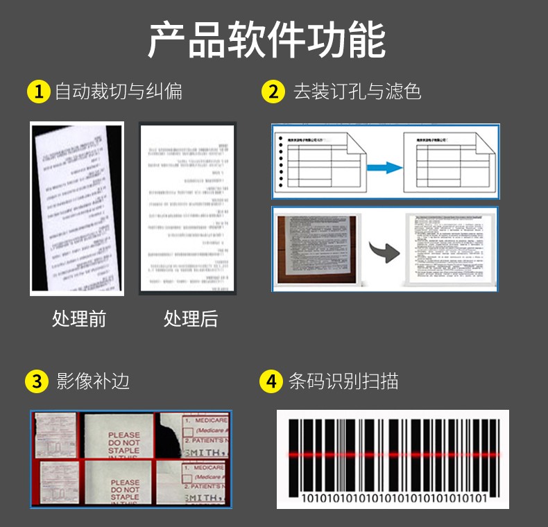ADF彩色双面扫描速度(A4,200dpi)  :   100