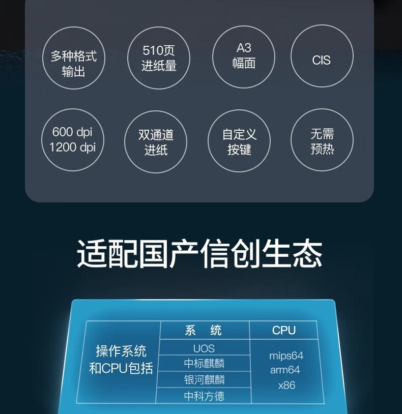 ADF彩色双面扫描速度(A4,200dpi)  :   100