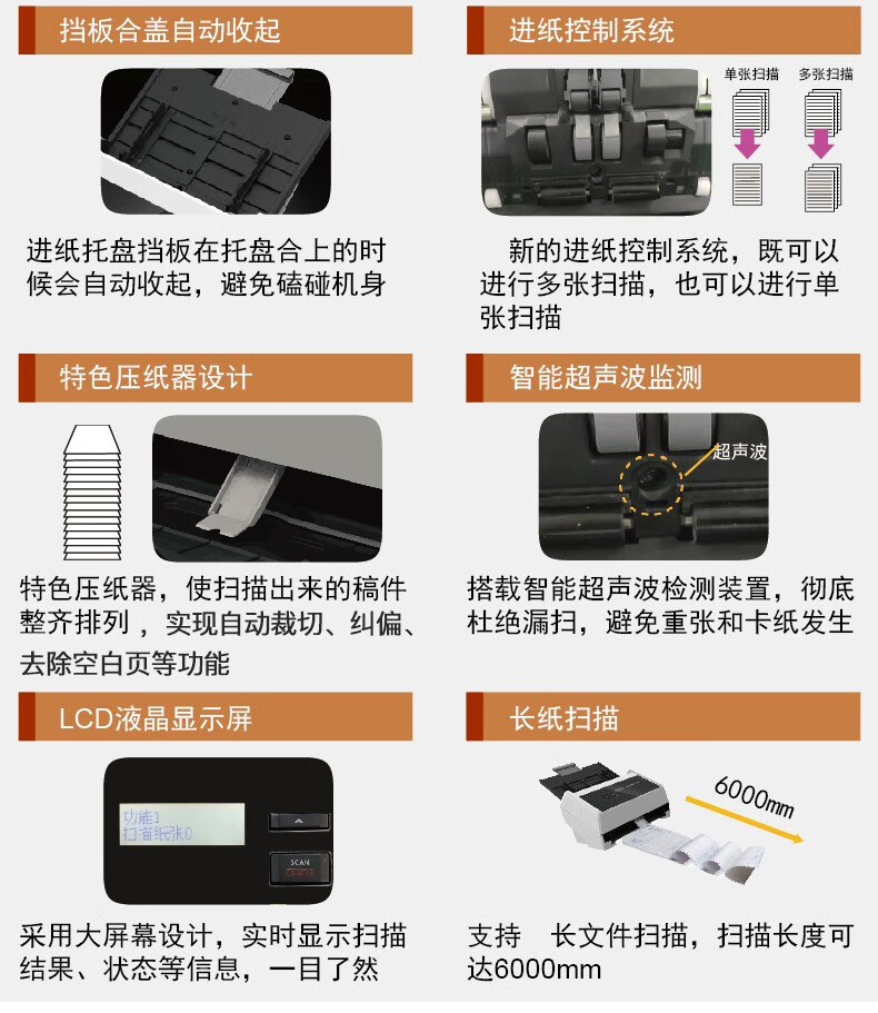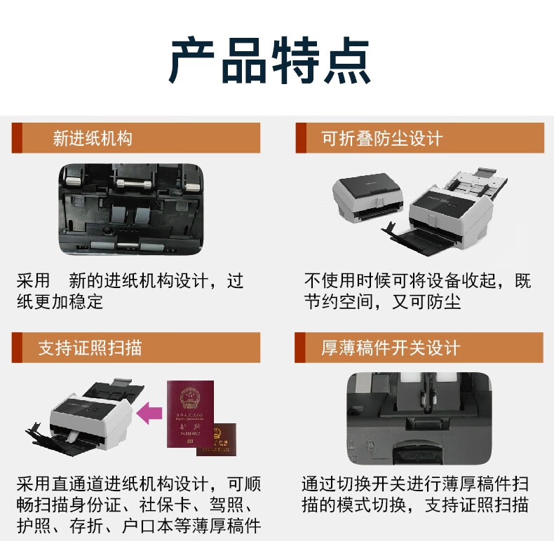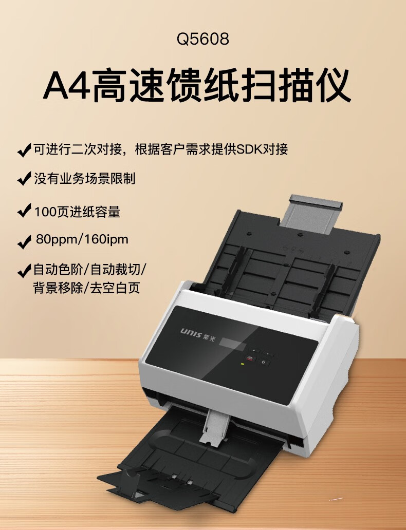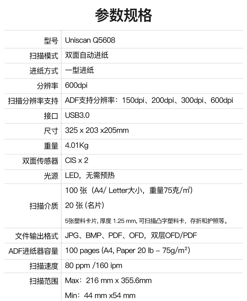 ADF彩色双面扫描速度(A4,200dpi)  :   100