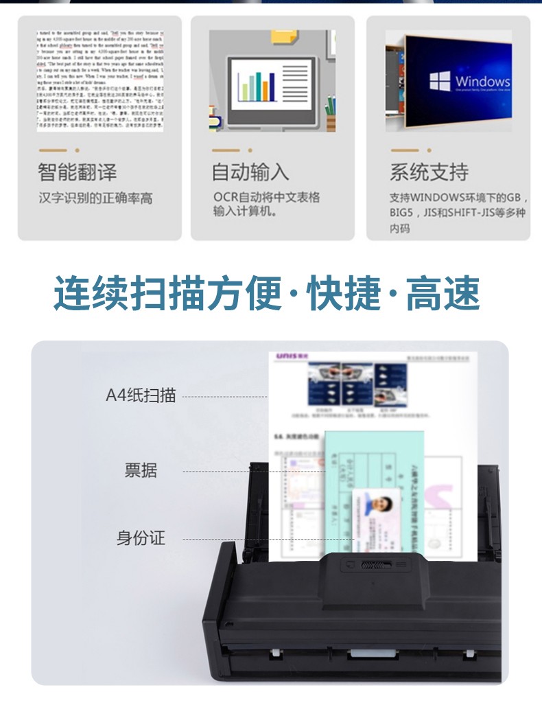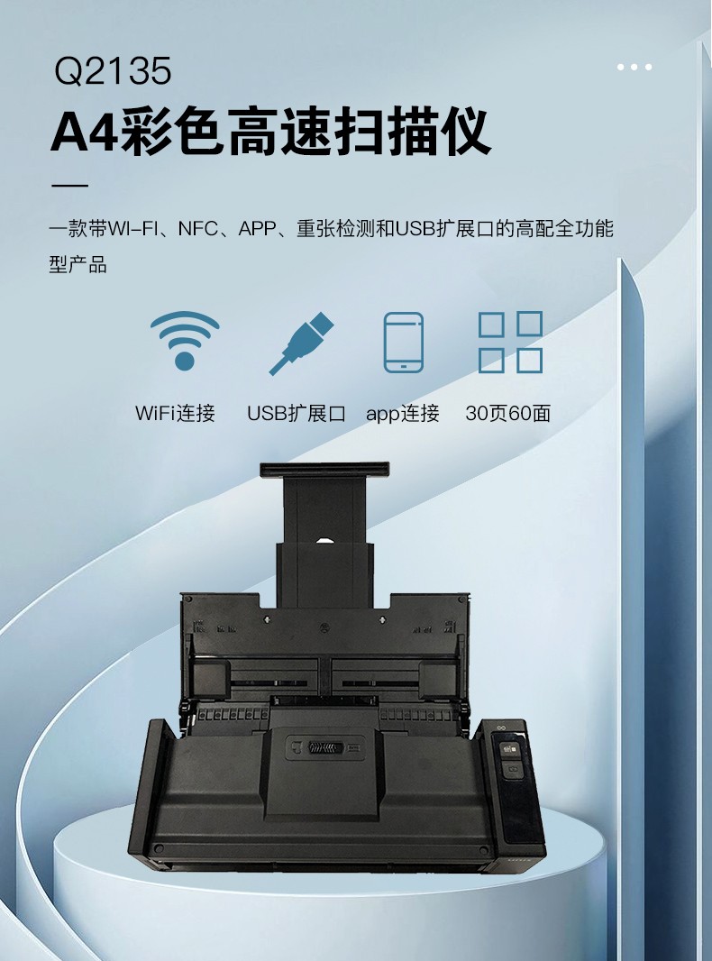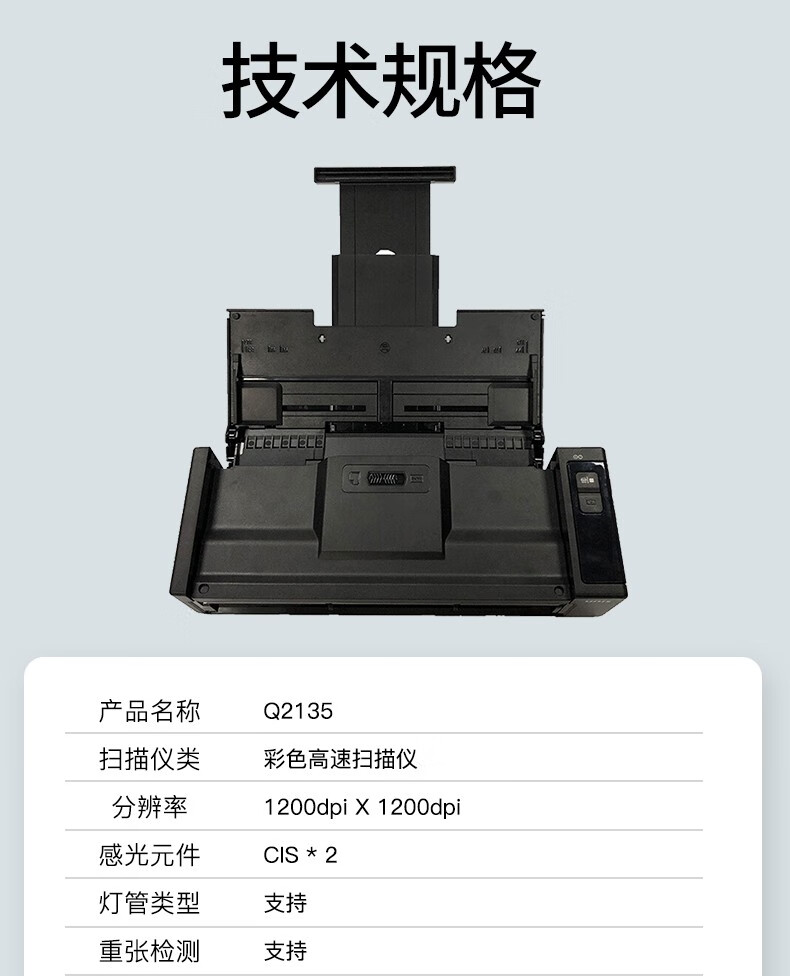 ADF彩色双面扫描速度(A4,200dpi)  :   100