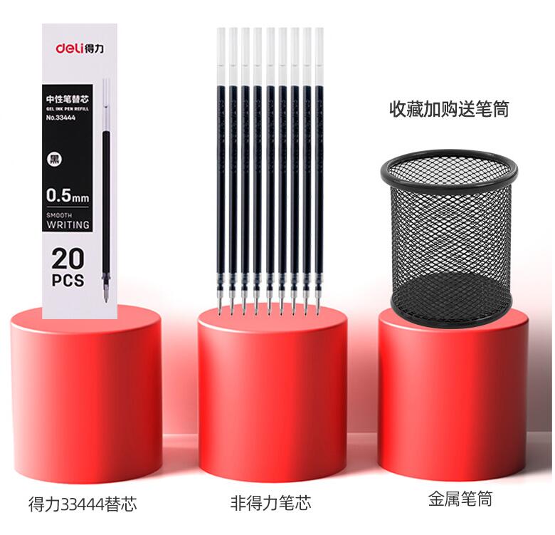 得力中性笔黑色0.5mm水笔圆珠笔 学生用官方水性笔芯红笔黑笔考试专用笔旗舰店文具办公用品碳素笔签字笔