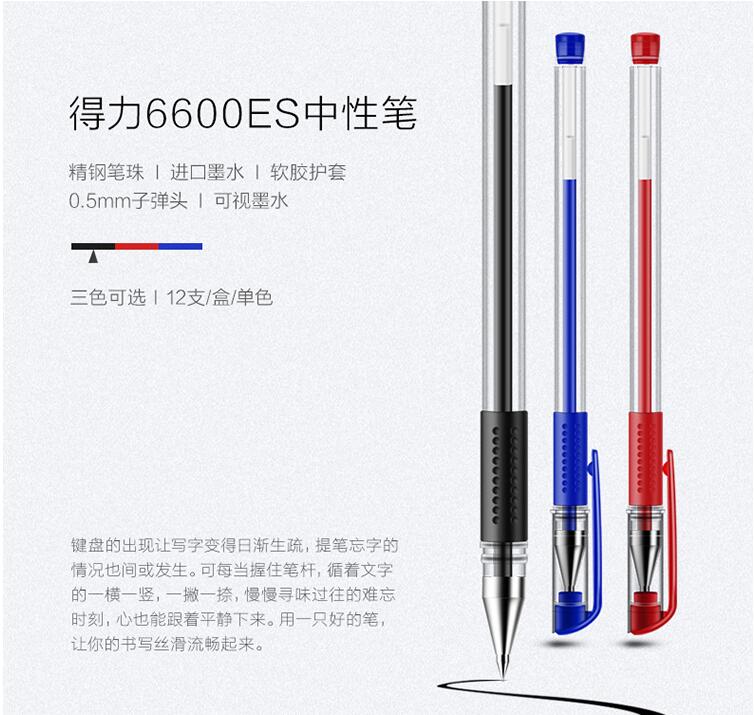 得力30支装水性笔0.5mm黑色水笔办公学习书写中性笔碳素签字笔学生用文具办公用品