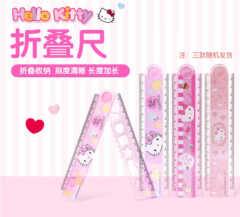HELLOKITTY卡通折叠尺 小学生用折叠尺KT猫多功能加长卡通直尺30cm凯蒂猫尺子波浪尺格尺文具儿童学习用品