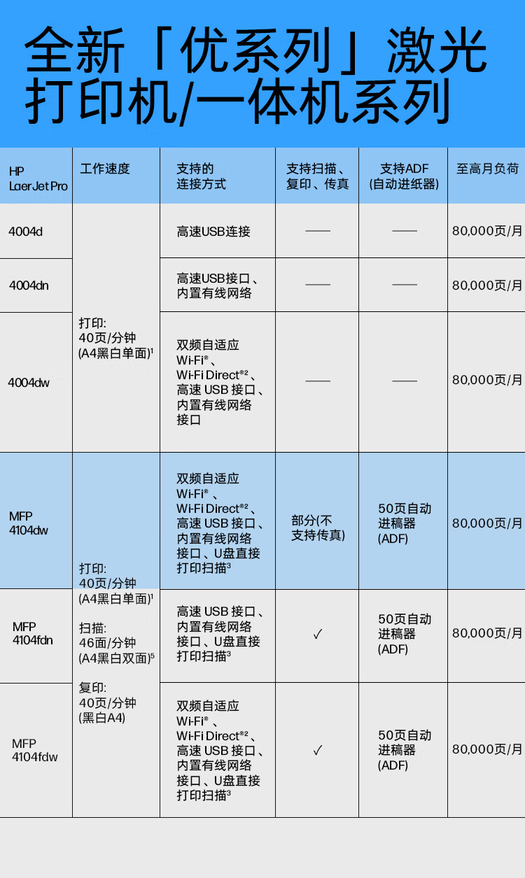包装清单  :   打印机;原装惠普黑色 LaserJet 硒鼓 ( 约 3050 页);入门指南;支持传单;保修指南;规格传单;电源线; USB 线(仅限无线配置)