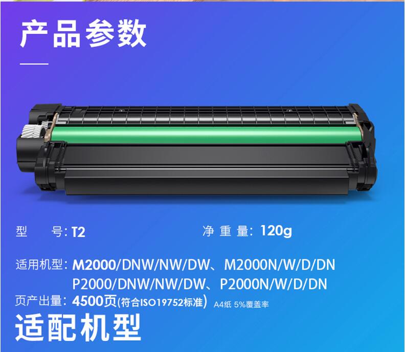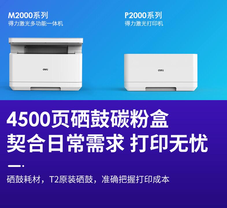 得力T2原装硒鼓墨盒碳粉墨粉M2000DW M2000DNW M2000N DN NW P2000D P2000W 2000激光复印机打印机粉盒通用