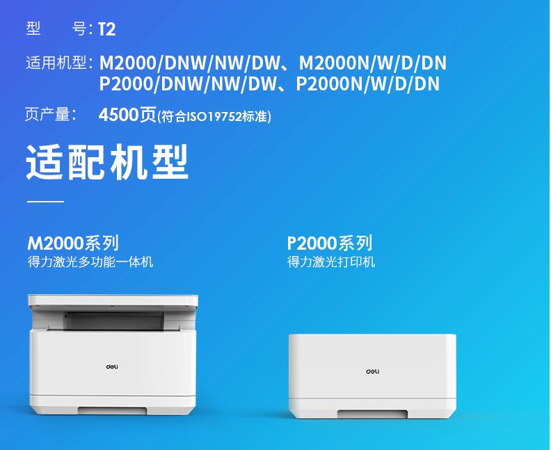 得力T2硒鼓墨盒碳粉M2000DW原装M2000DNW M2000N NW P2000D P2000W 2000DN激光复印机打印机粉盒通用易加粉