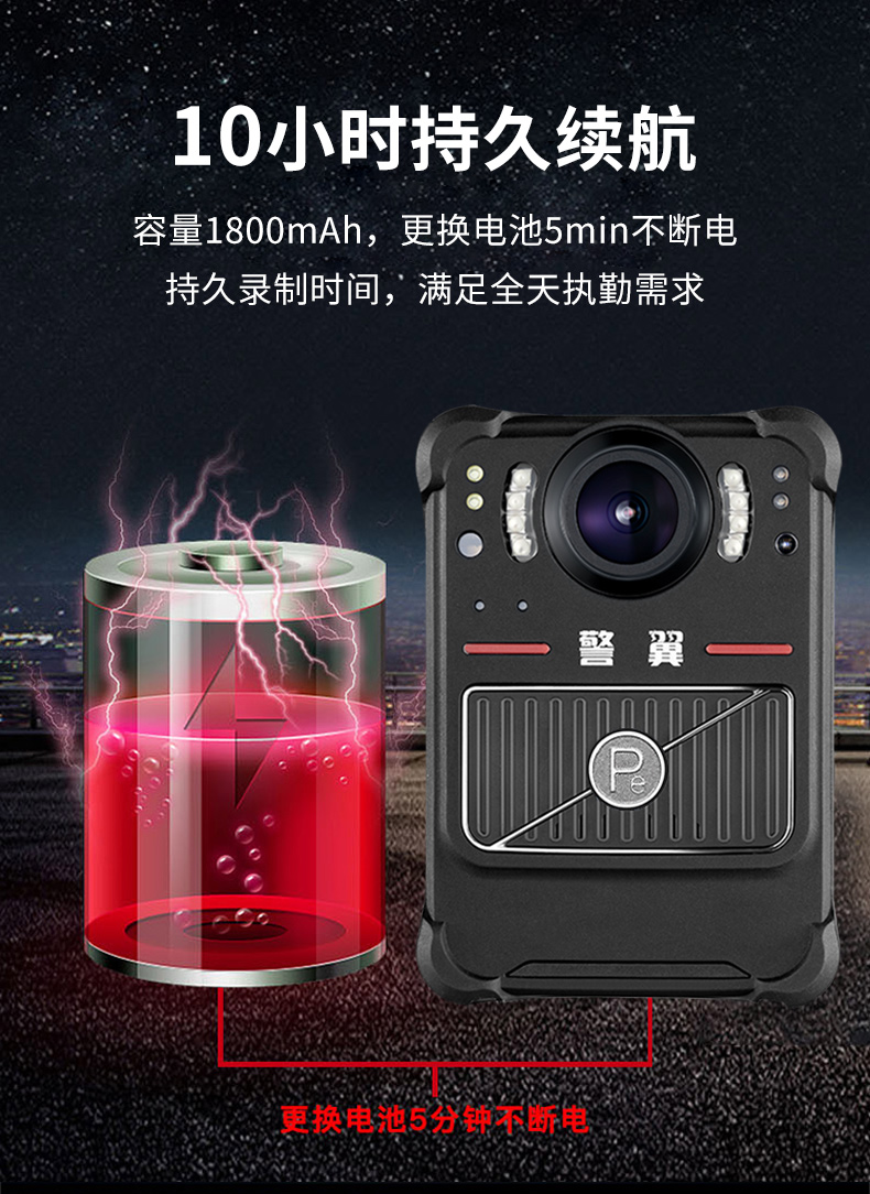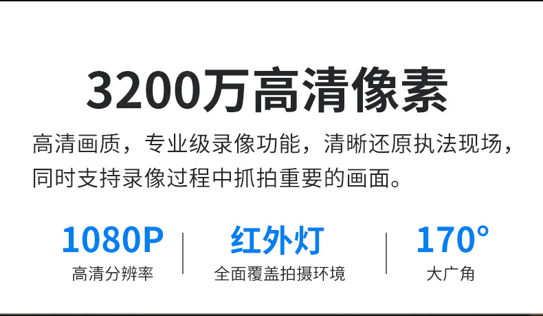 警翼 F1 通用无线电通信设备 执法记录仪3200万高清红外夜视移动侦测超强防护防水32G双电