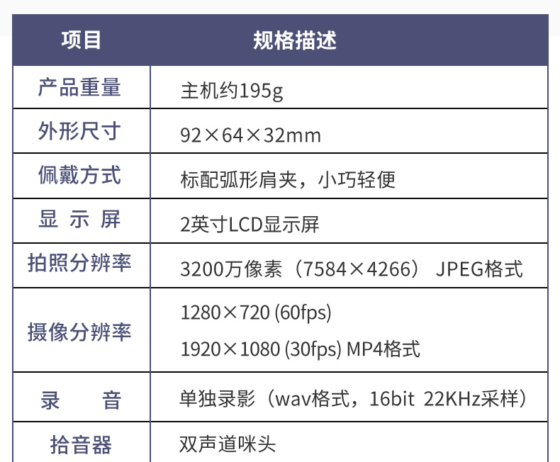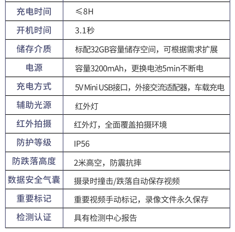 包装清单  :   记录仪、适配器、数据线、说明书、合格证
