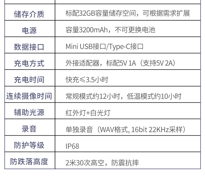 包装清单  :   记录仪、适配器×1、数据线×1、说明书×1、包装盒