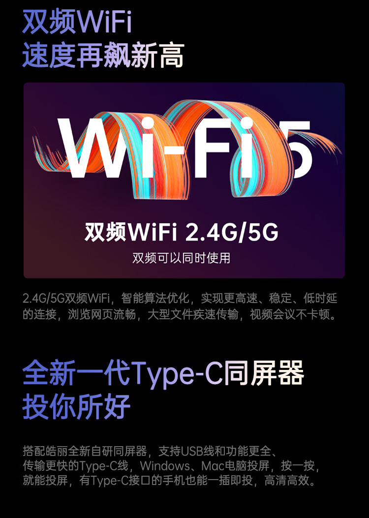 内置无线传屏接收器  :   无
