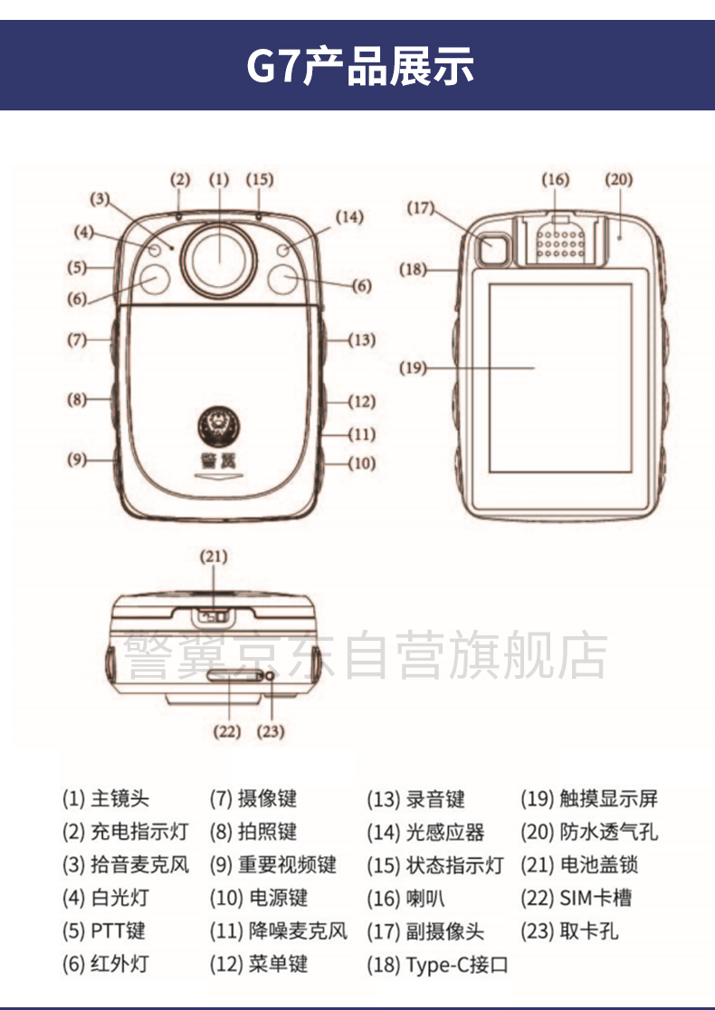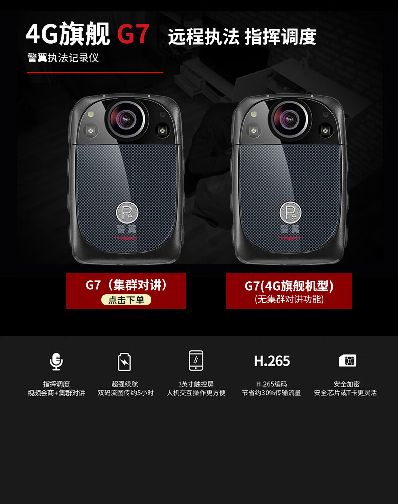 警翼 G7 通用无线电通信设备 4G图传 高清无光红外夜视3英寸触摸屏GPS定位 64G版本