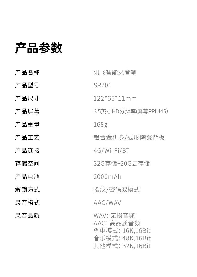 录音格式  :   AAC