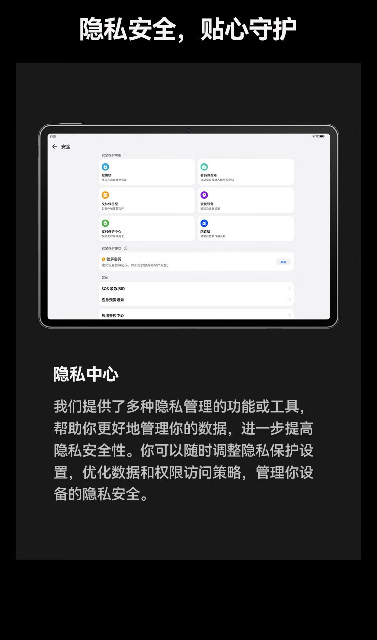 包装清单  :   平板(内置电池) x 1 华为 SuperCharge 充电器 x 1 Type-C 数据线 x 1 快速指南 x 1 三包凭证 x 1