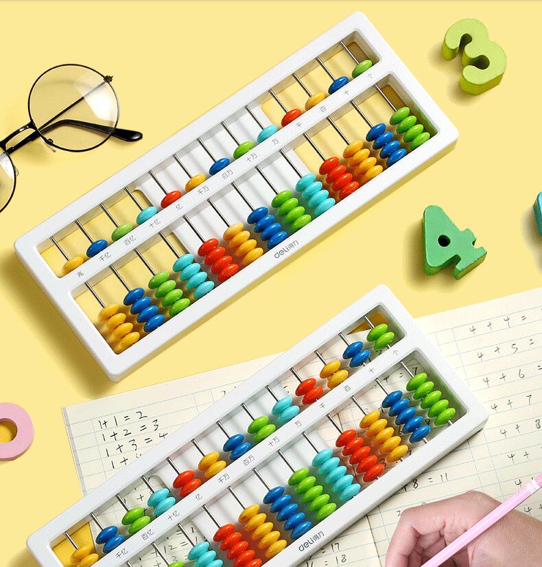得力算盘小学生珠心算幼儿园5珠7珠益智玩具小学生二年级专用儿童算数加减法算术计数器学具盒一年级珠算算盘
