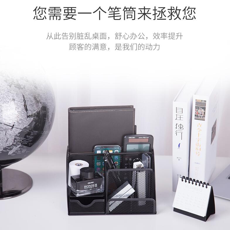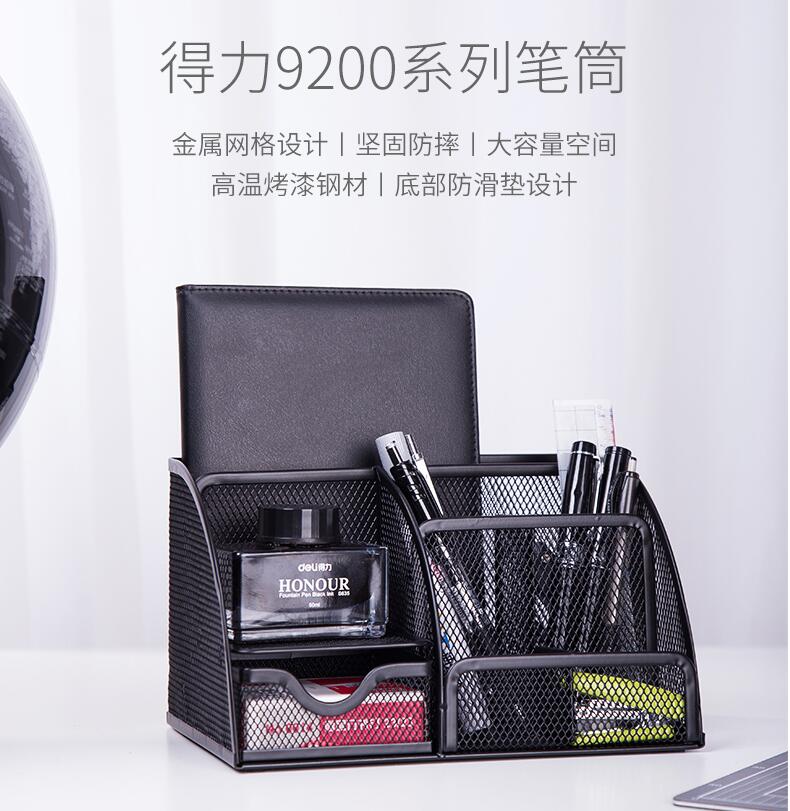 得力9200金属网格笔筒组合办公用品桌面收纳笔插文具整理盒多功能笔座大容量小清新时尚可爱创意收纳网纹网状
