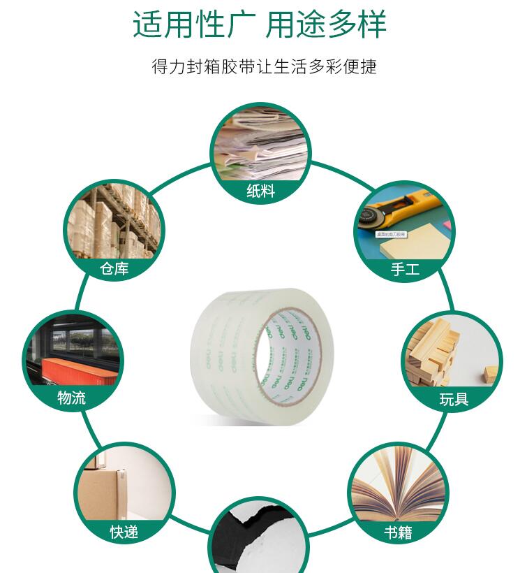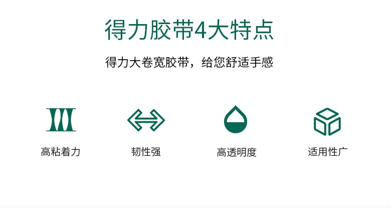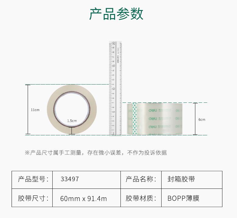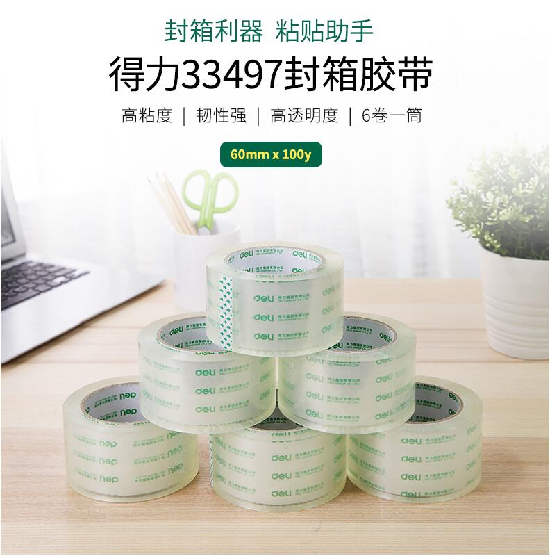 得力33497高透明胶带 1筒6卷 封箱大号4.8/6cm宽胶带大卷快递可定制打包批发胶布封口固定高粘度不易断6卷装封箱胶带