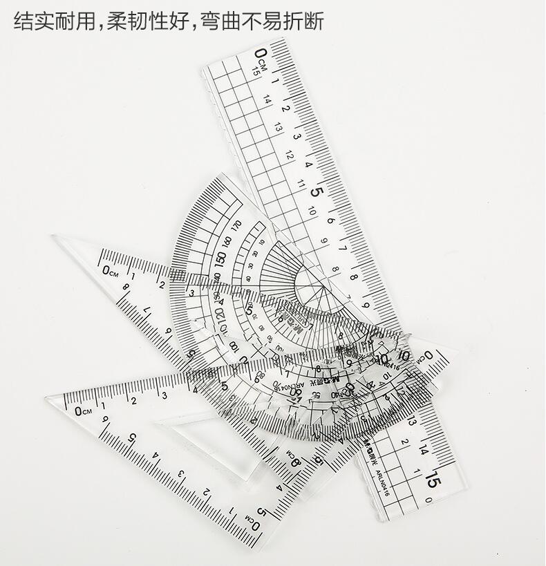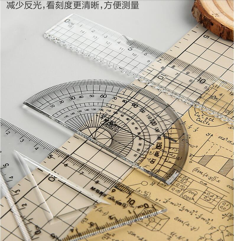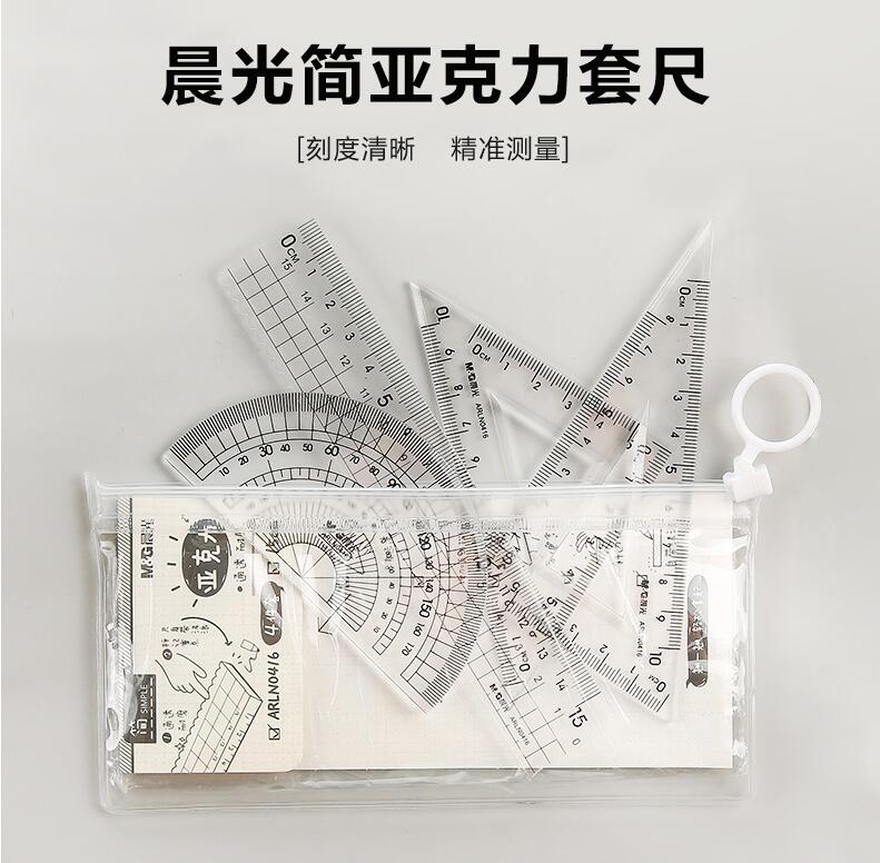 晨光文具 透明套尺 亚克力四件套15cm直尺三角板量角器学生用考试绘画专用制图测量随身便携多功能几何工具