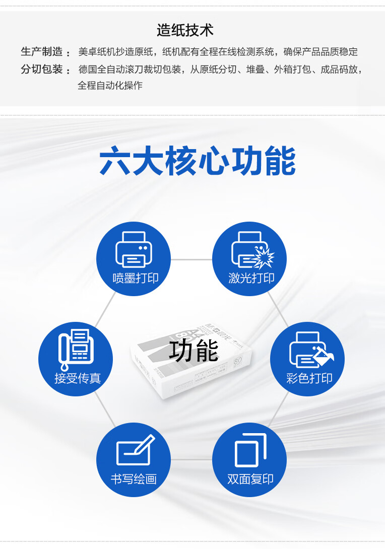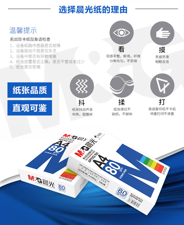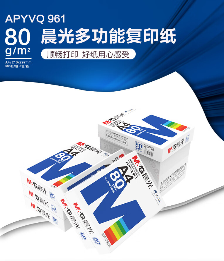 包装清单  :   晨光(M&G)蓝晨光80g A4 复印纸 500张/包 5包/箱(2500张)