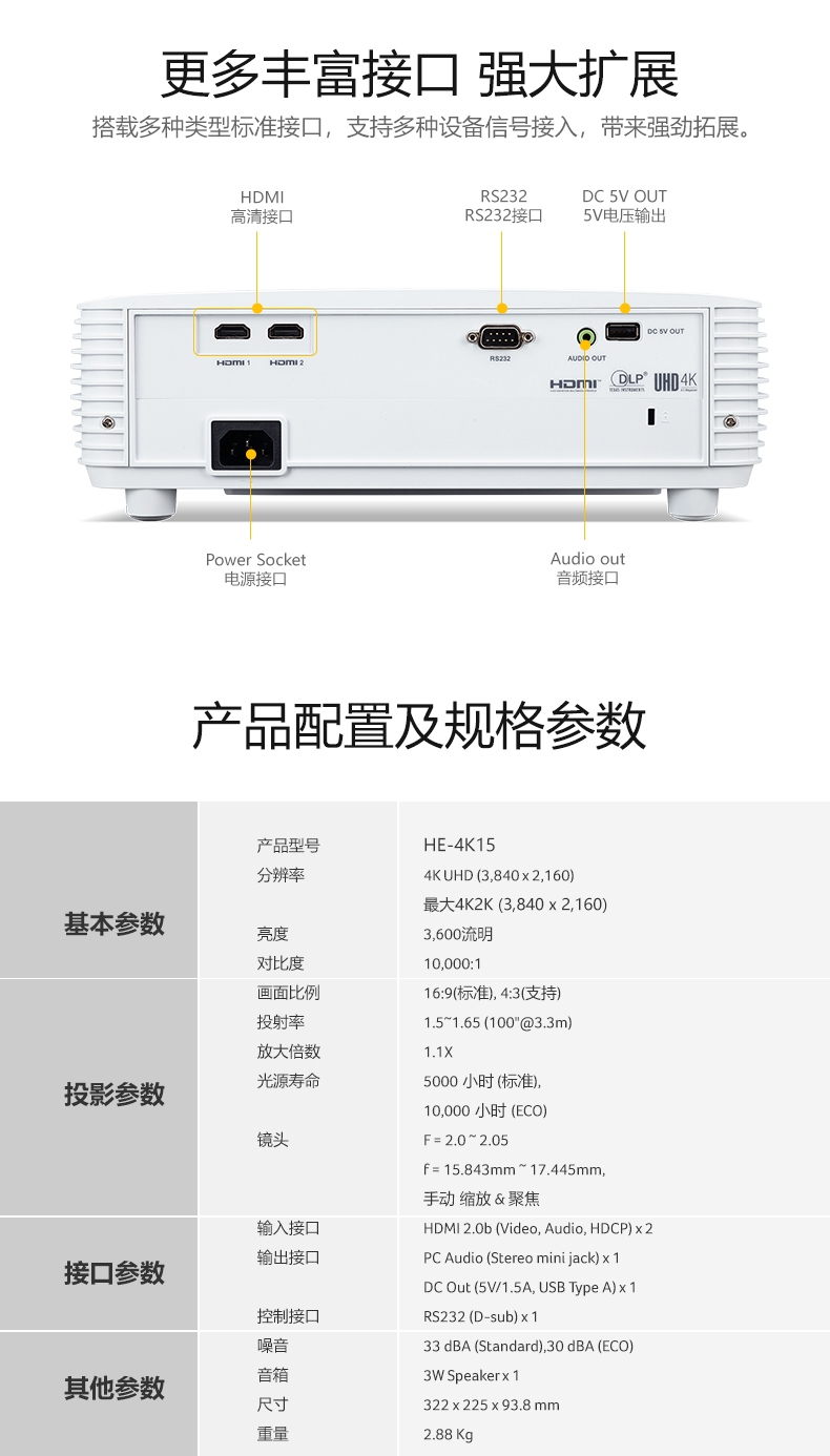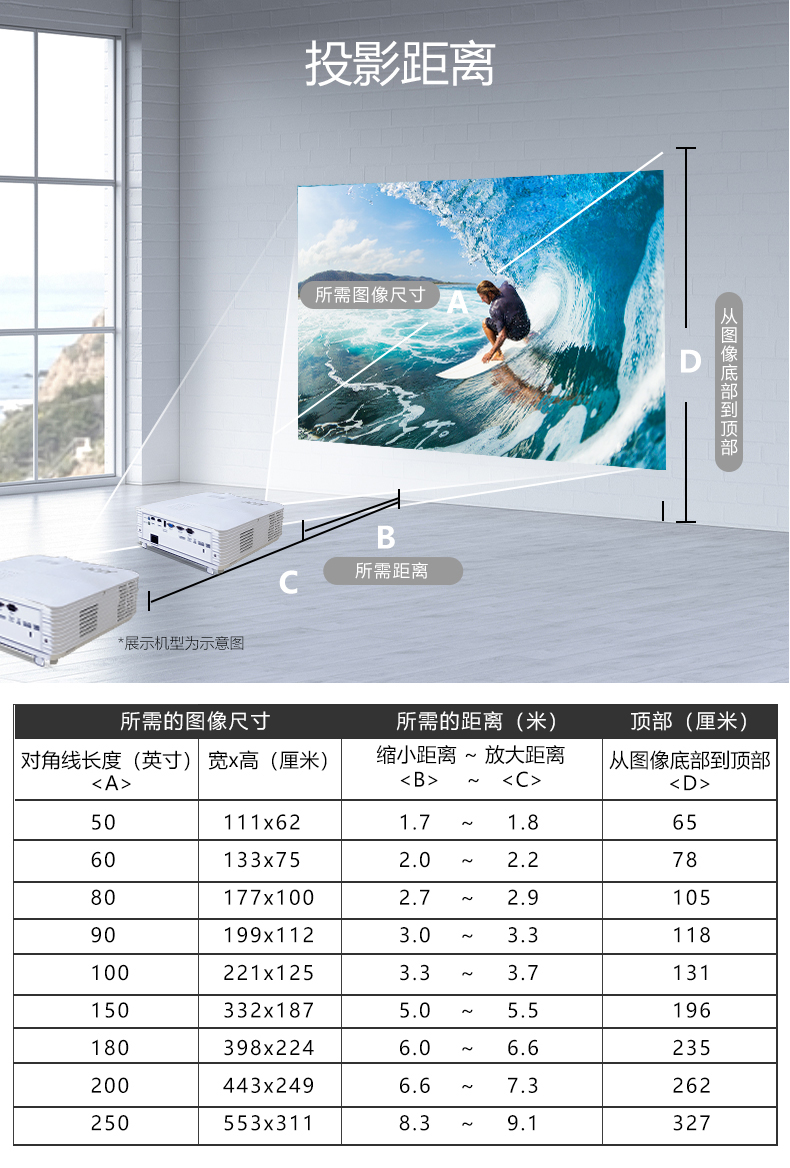 投射比  :   短焦