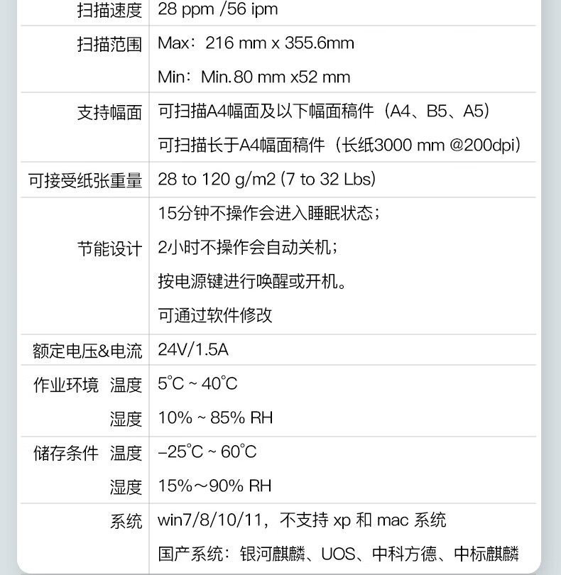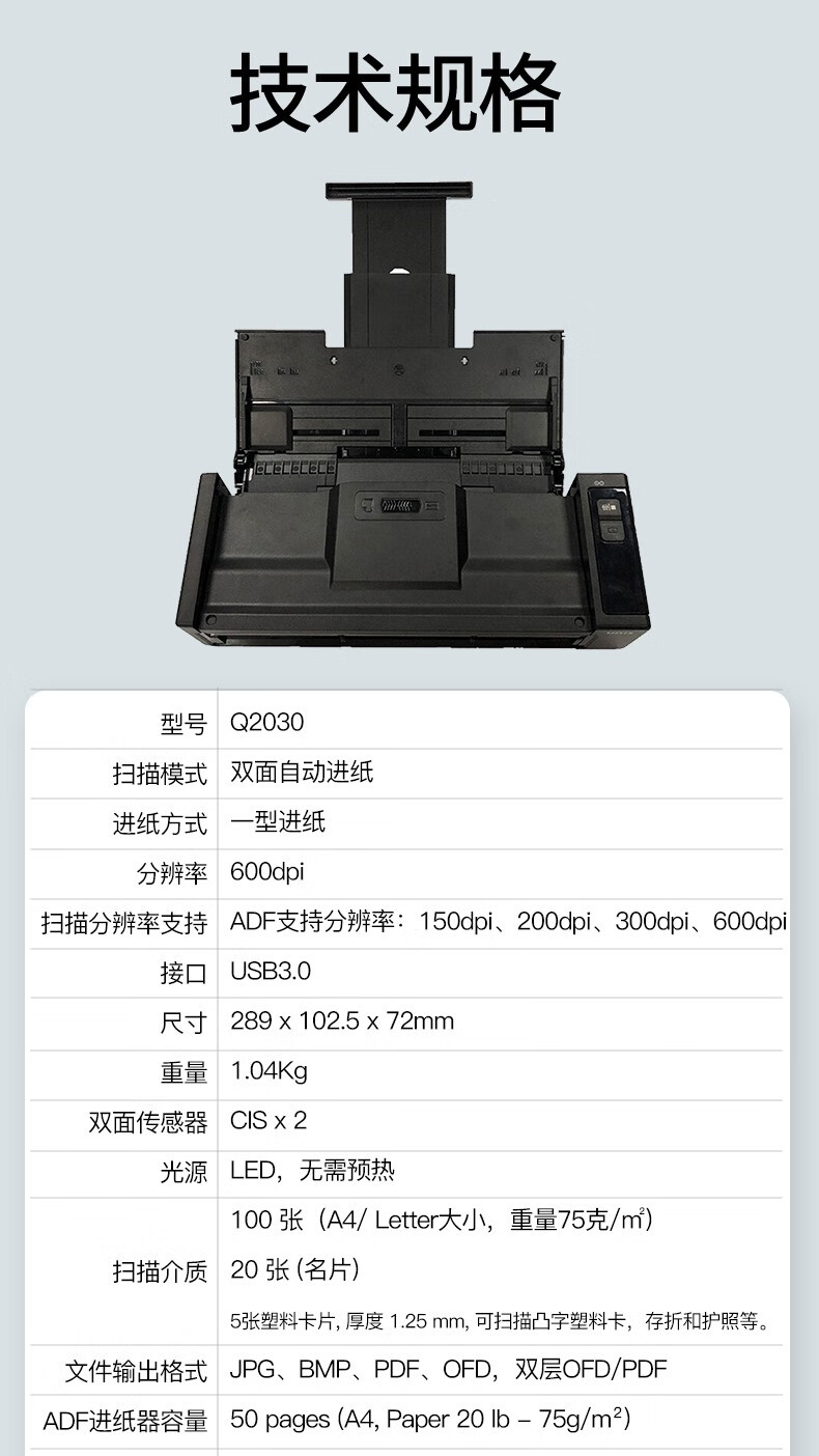 ADF彩色双面扫描速度(A4,200dpi)  :   50