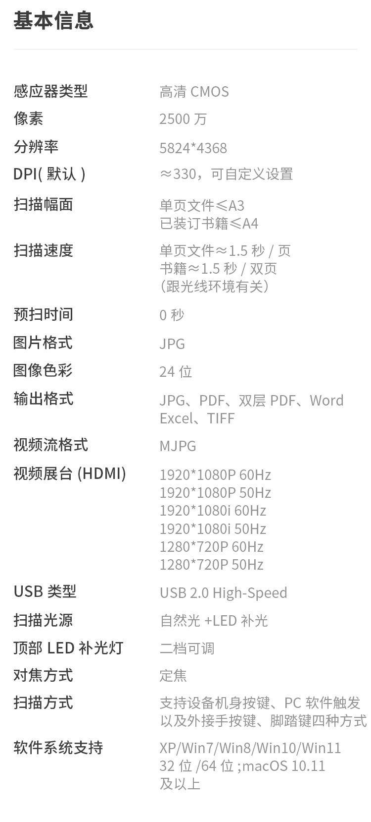 ADF彩色双面扫描速度(A4,200dpi)  :   无