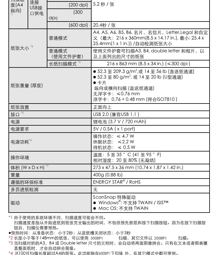 ADF彩色双面扫描速度(A4,200dpi)  :   无