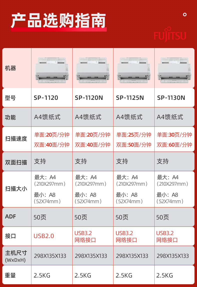 ADF彩色双面扫描速度(A4,200dpi)  :   无