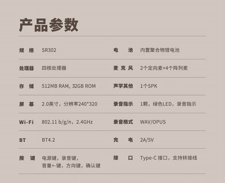 包装清单  :   • 录音笔设备*1 • Type-C 数据线*1 • 电子说明书卡&三包卡&合格证*1\"