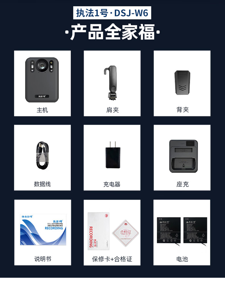 执法1号 DSJ-W6 通用无线电通信设备 执法记录仪4K高清H.265编码超长续航记录摄像随身执法仪64G