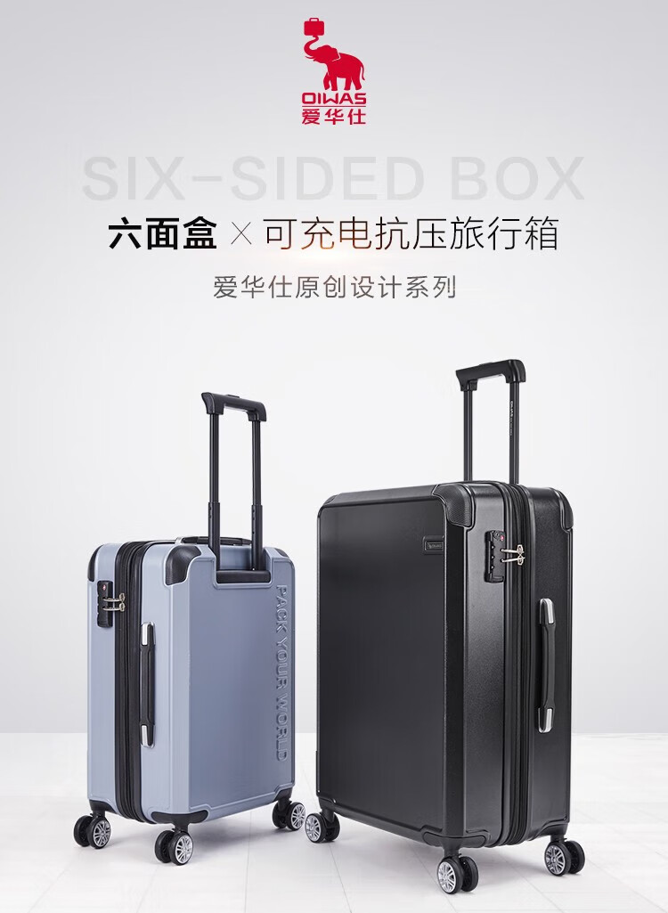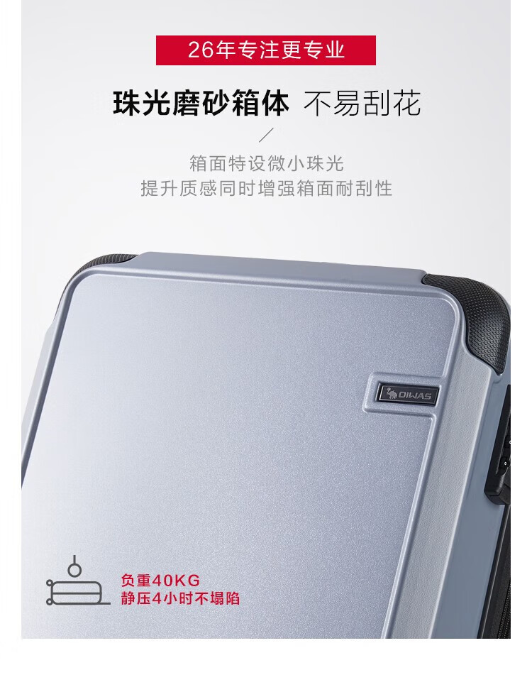 包装清单  :   爱华仕OCX6648-20 珠光磨砂箱多档位可调行李箱20英寸拉杆箱 银色*1