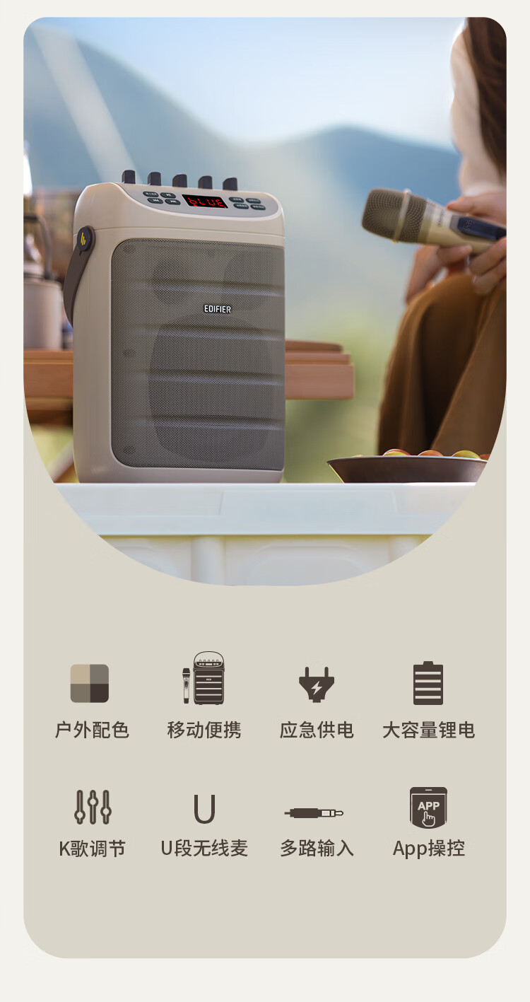 包装清单  :   音箱*1 无线话筒*1 电源适配器*1 连接线*1 说明书&保修卡*1
