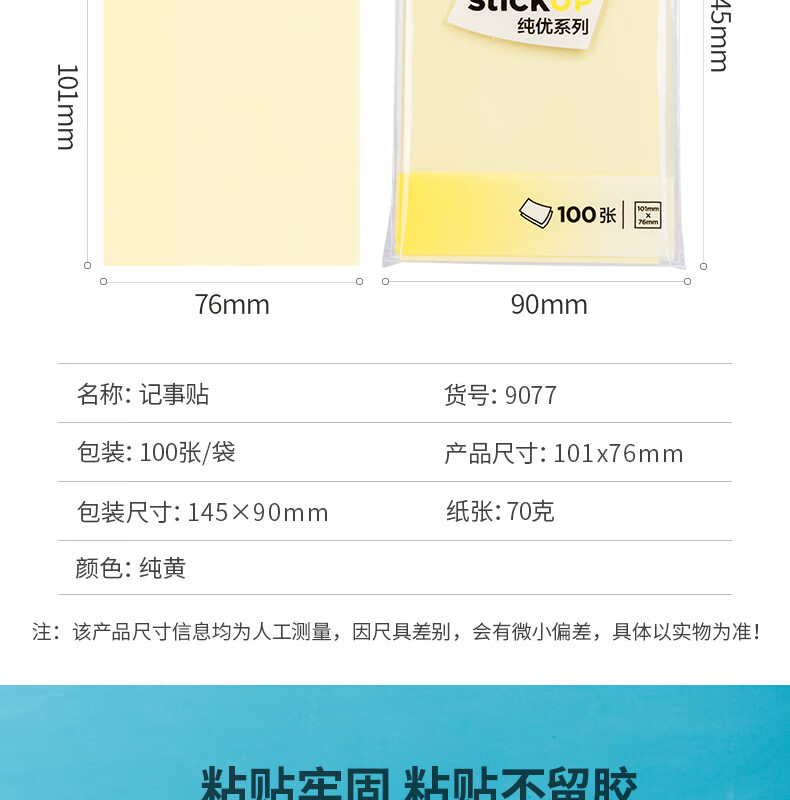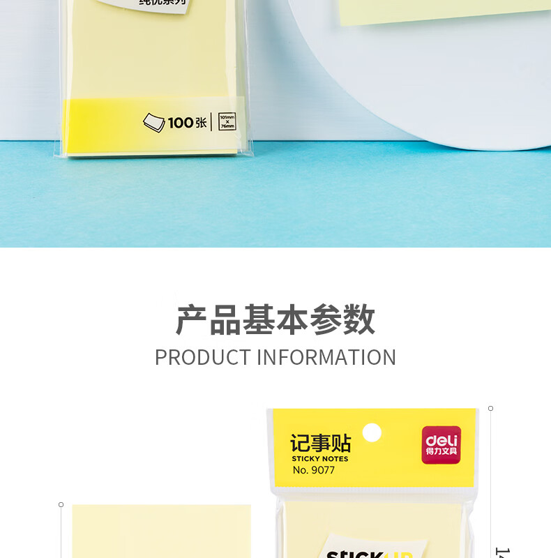 得力/deli 9077 记事贴 100张便利贴76*101mm备忘便签纸易撕好贴粘贴牢固优事贴记事贴