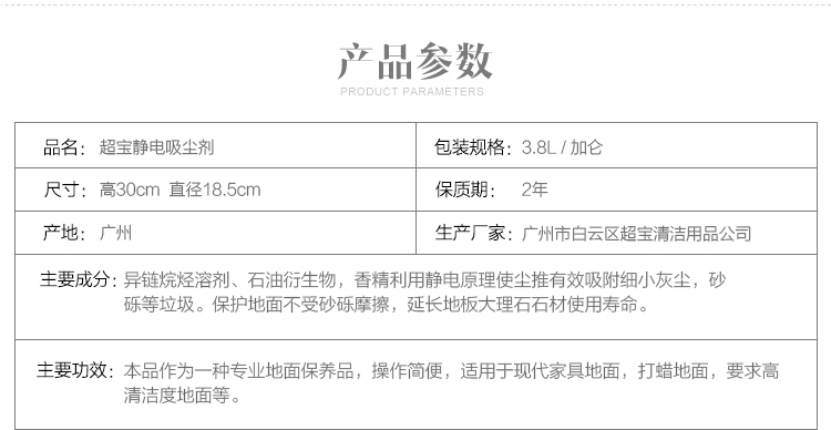 超宝/CHAOBAO CB01 清洁用品 超宝静电吸尘埃剂尘推油地拖油静电水除尘剂牵尘液3.8L大瓶地板清洗液
