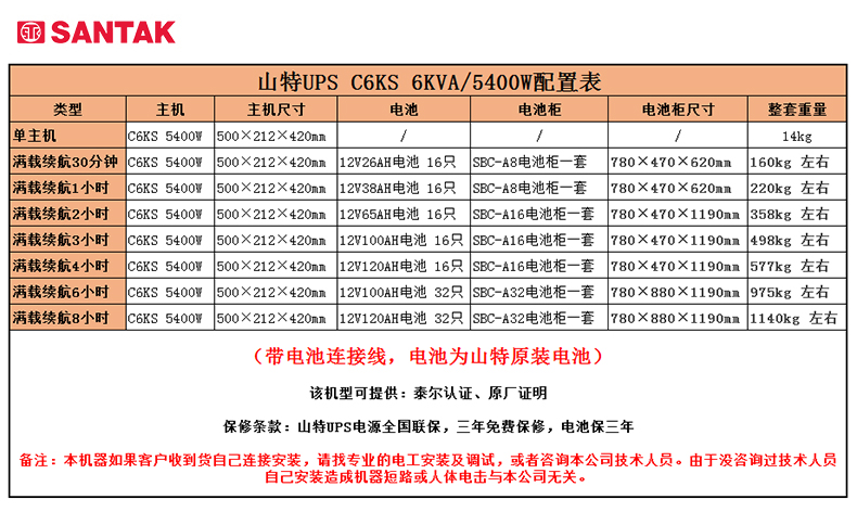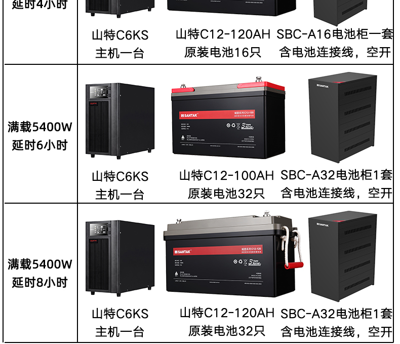 包装清单  :   C6KS主机: 一台 电池连接线:配套 C12-100AH电池:16节 SBC-A16电池柜:1套 简易安装说明:一份