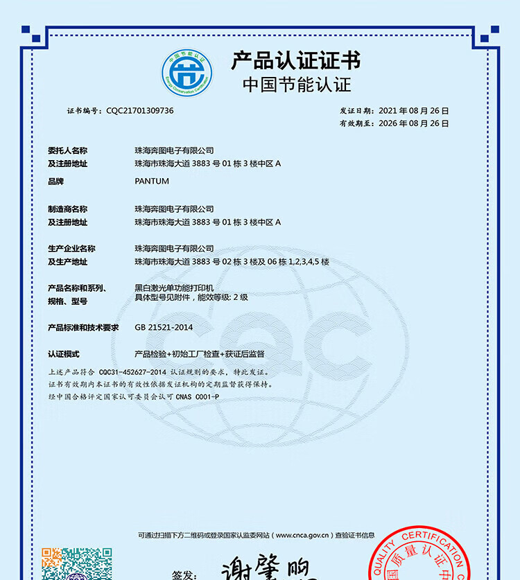中国节能产品认证证书扫描件  :   -