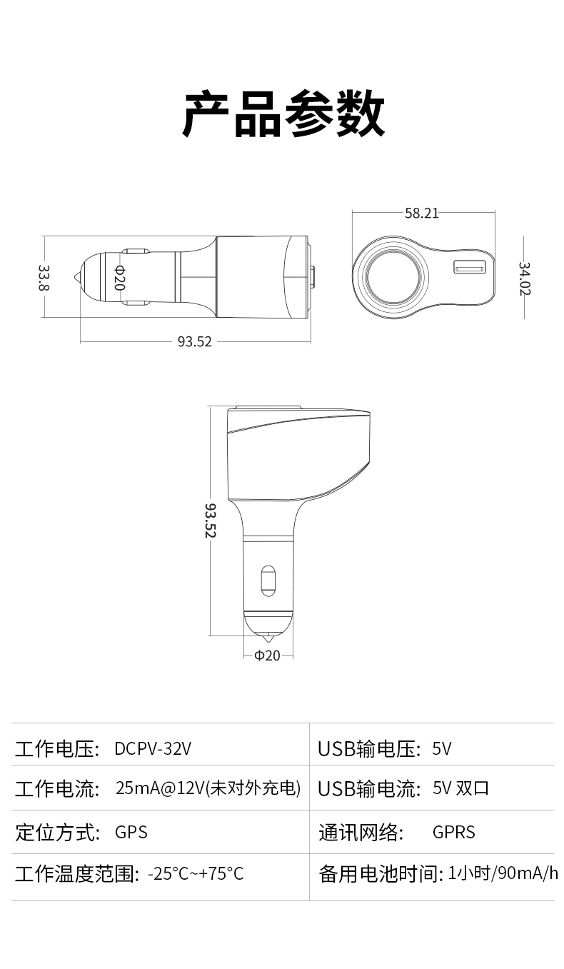 产品尺寸(mm)  :   长4.75cm;宽2.8cm;高3.3cm