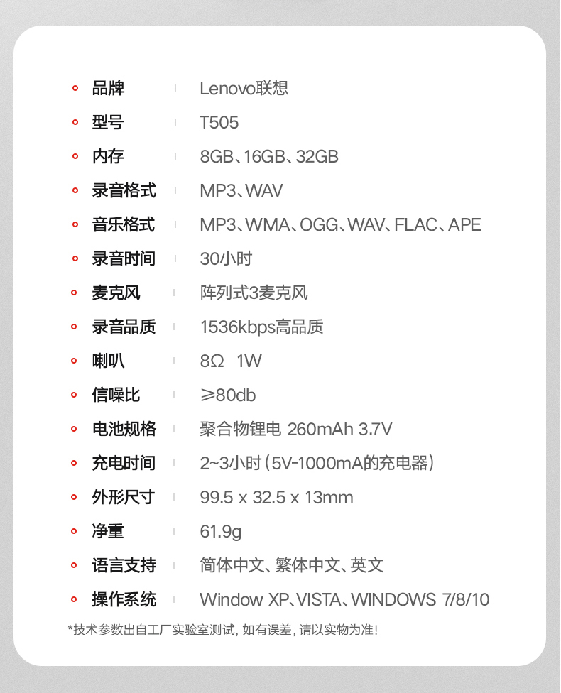 机身尺寸(mm)  :   长99.5mm;宽32.5mm;高13mm