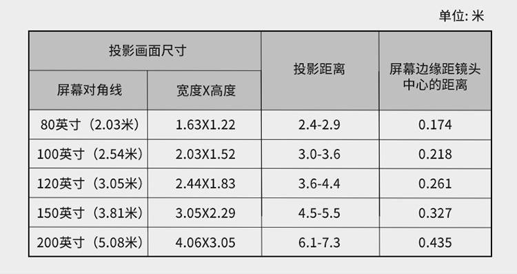 投射比  :   短焦