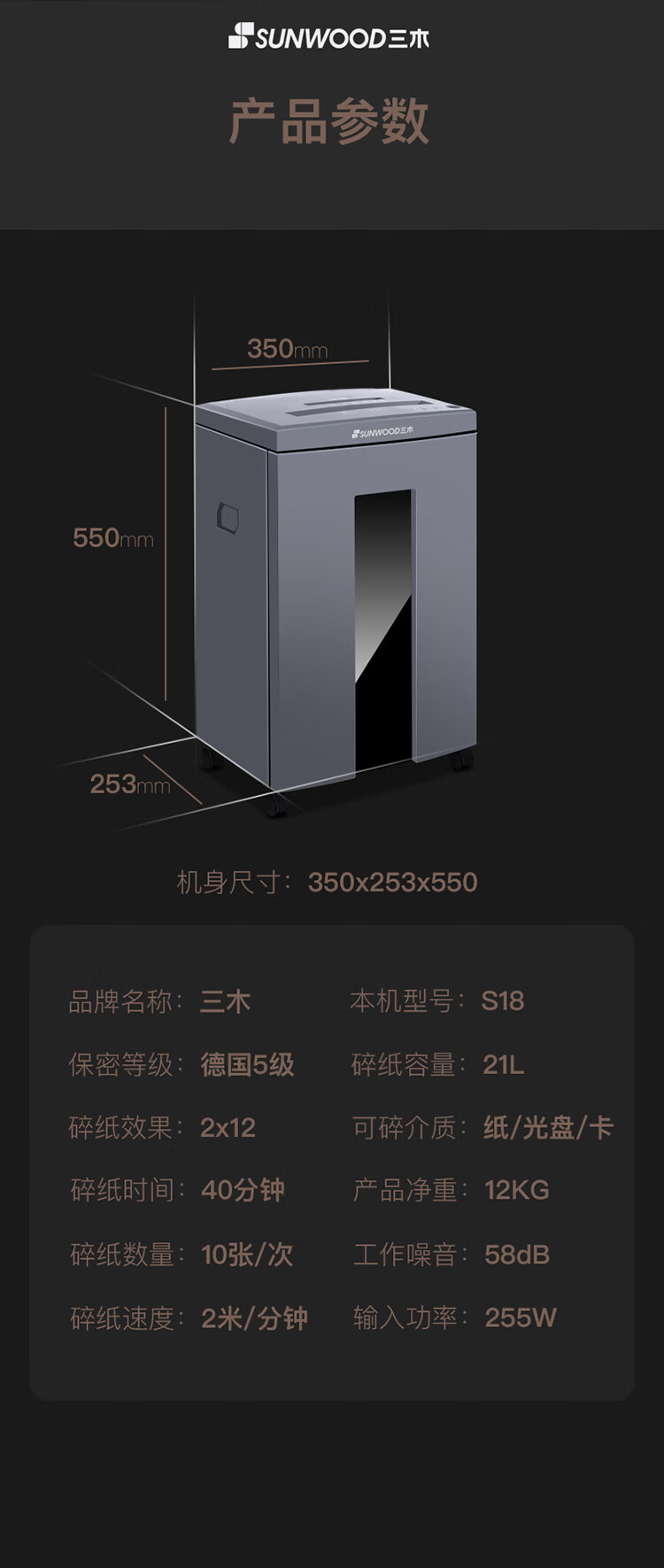 碎纸宽度(mm)  :   220